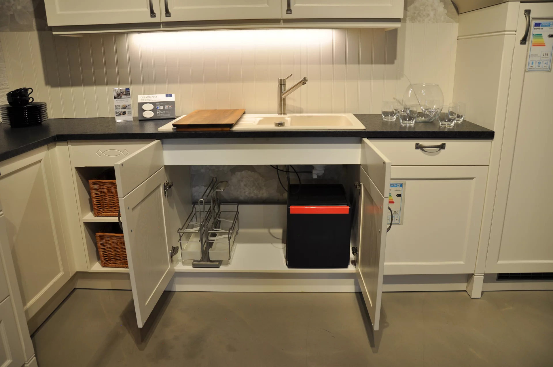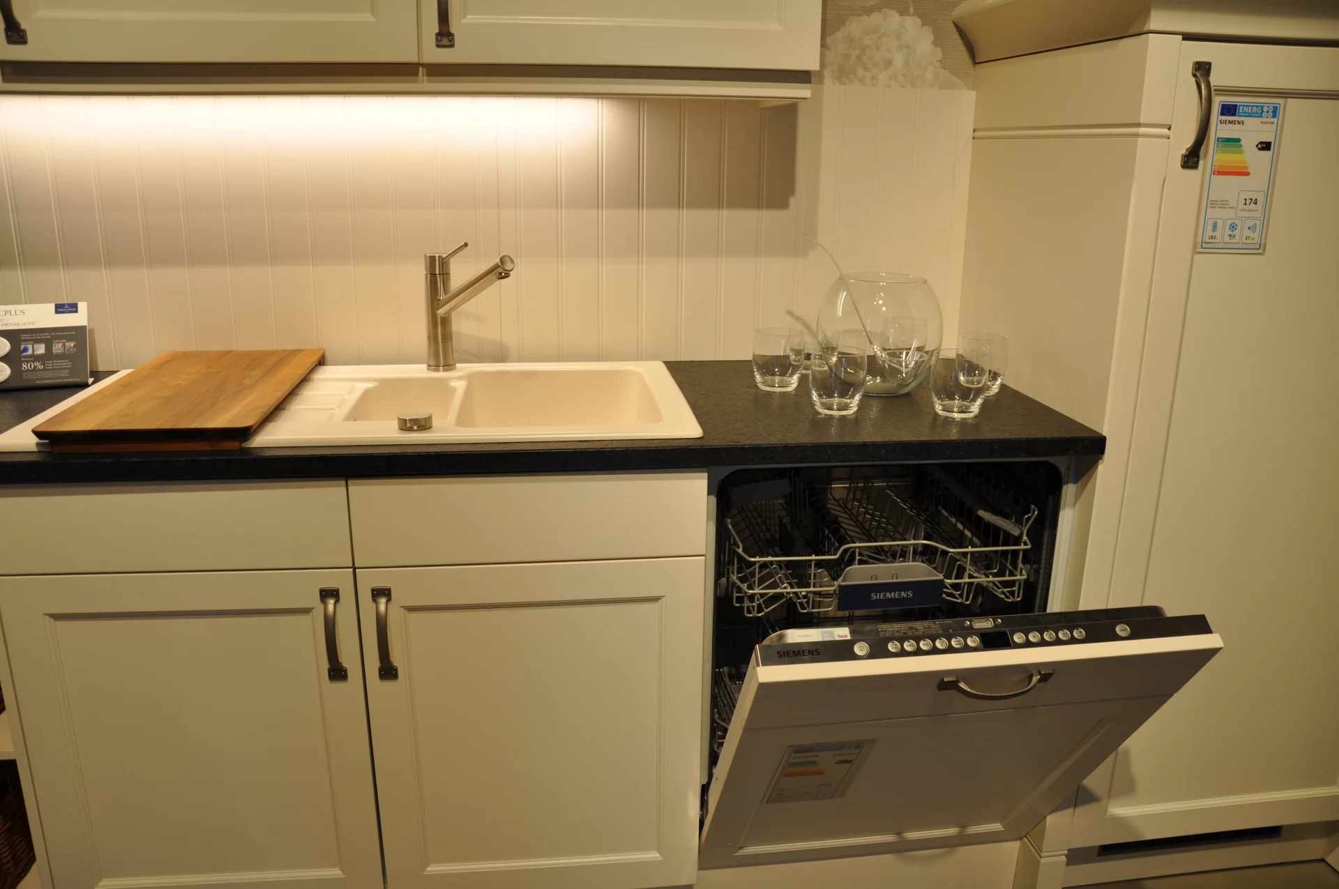HÄCKER Classic Küche „C130 Bristol - Magnolie -“ ausgestattet mit Marken Geräten der Firma Siemens und Villeroy & Boch Spüle und Armatur. Die Küche lässt sich frei umplanen und beliebig erweitern.